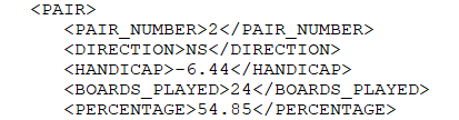 • A quick check suggests that handicaps are only available for matchpointed events and, as far as I can see, it is not put in the XML output.